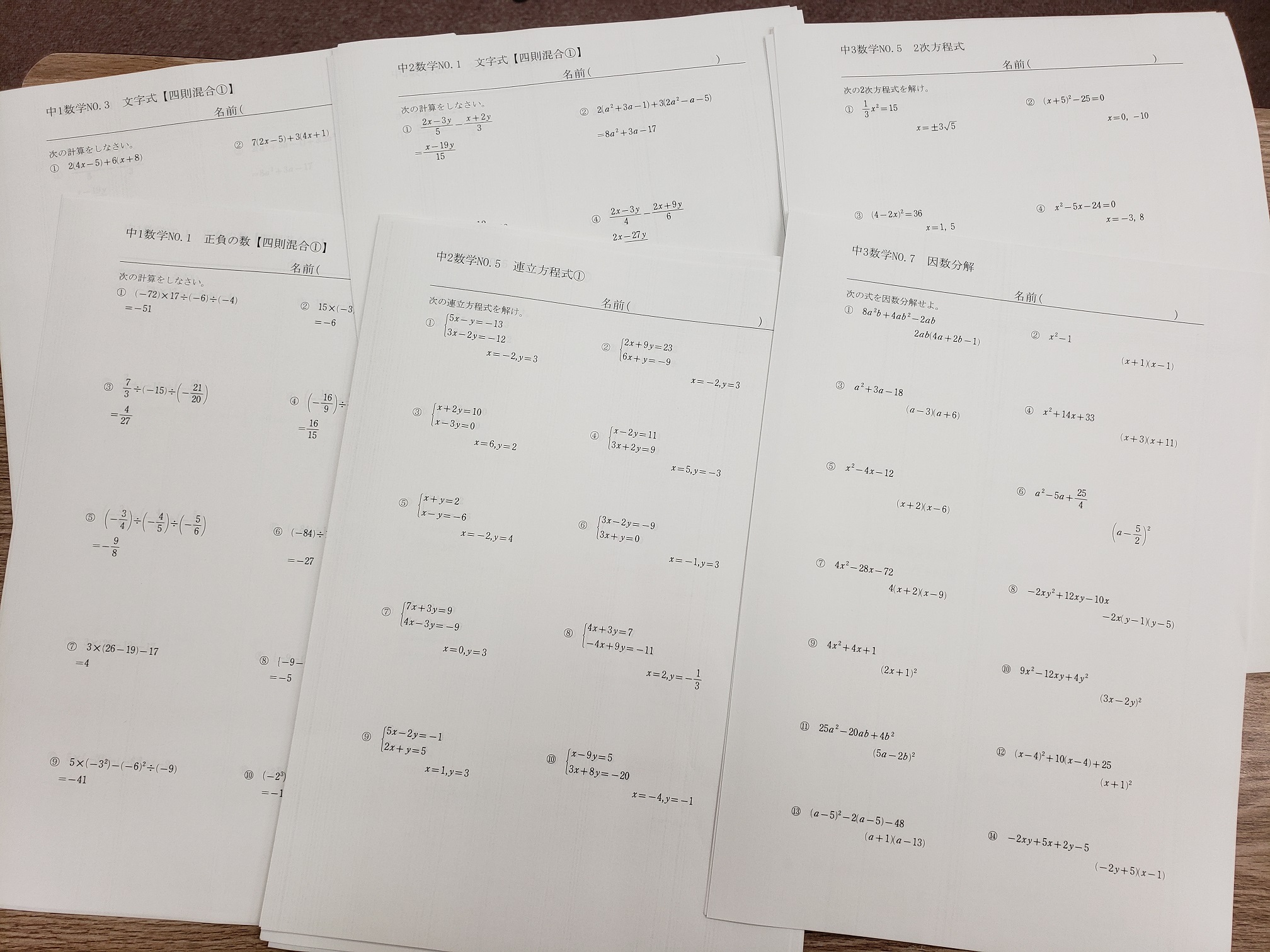 学年別に計算のチェックテストを作りました。