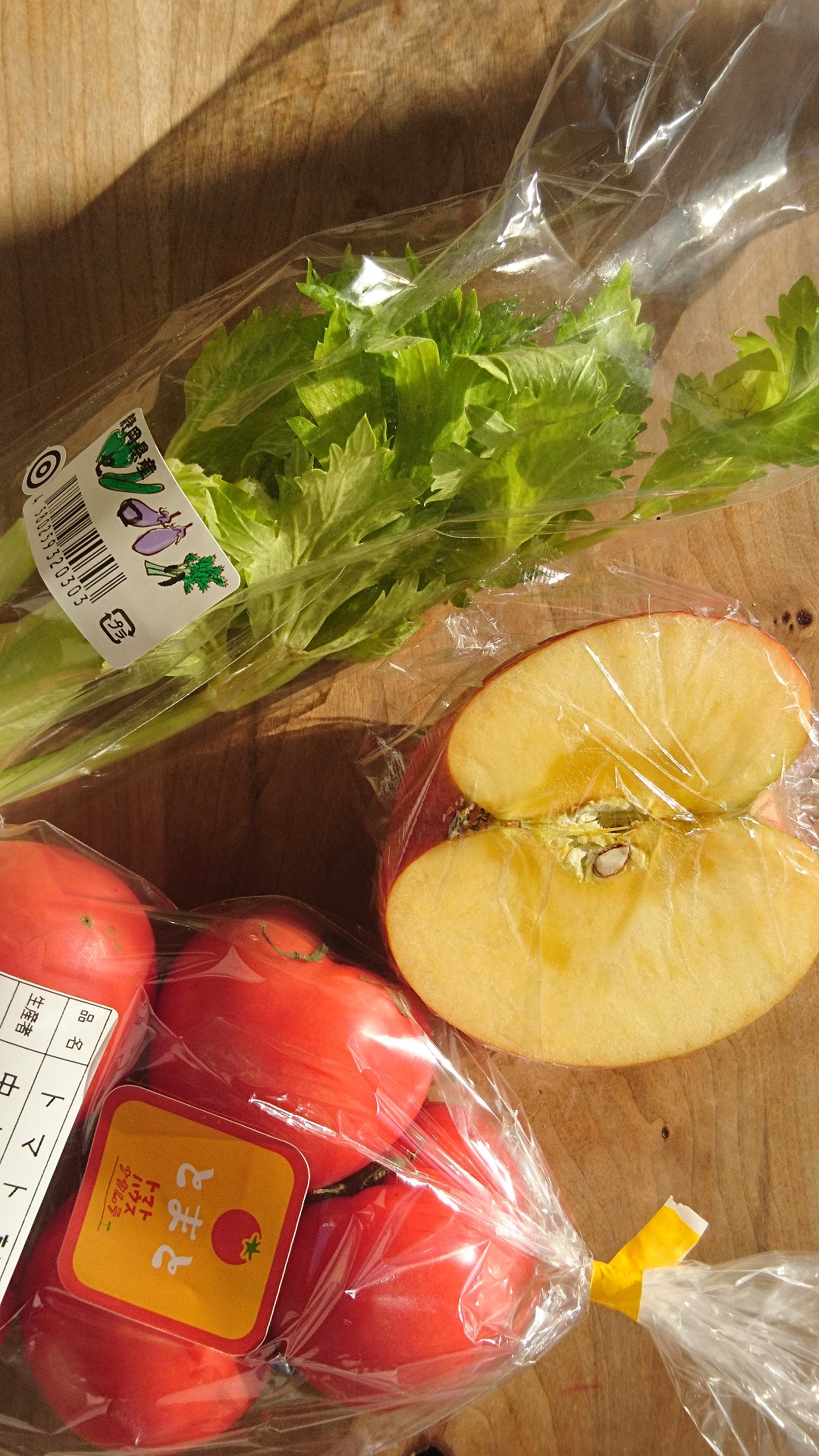こちらは、セロリとトマト、りんごでミックスさせます。
