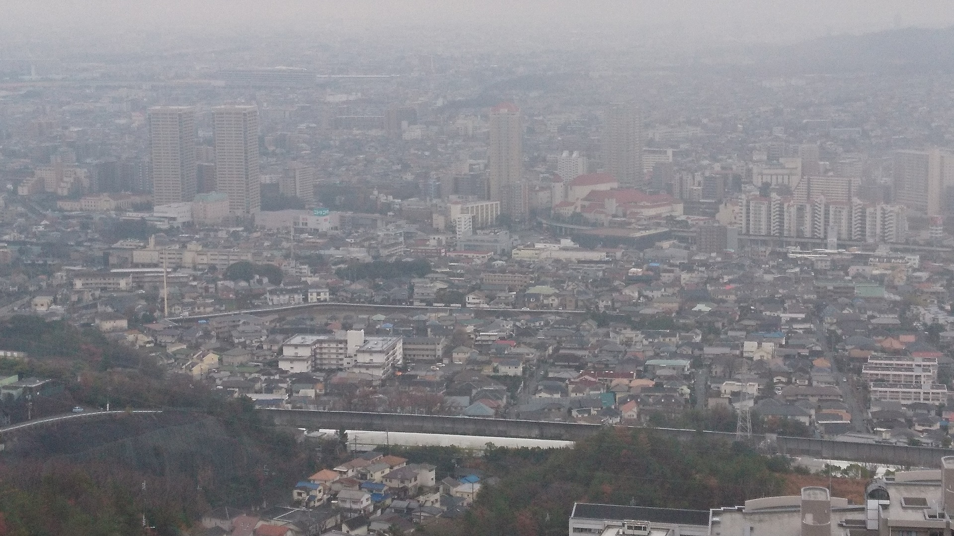 正月休みは関西へ行きました。これは宝塚の街を望む風景、霧が・・・・