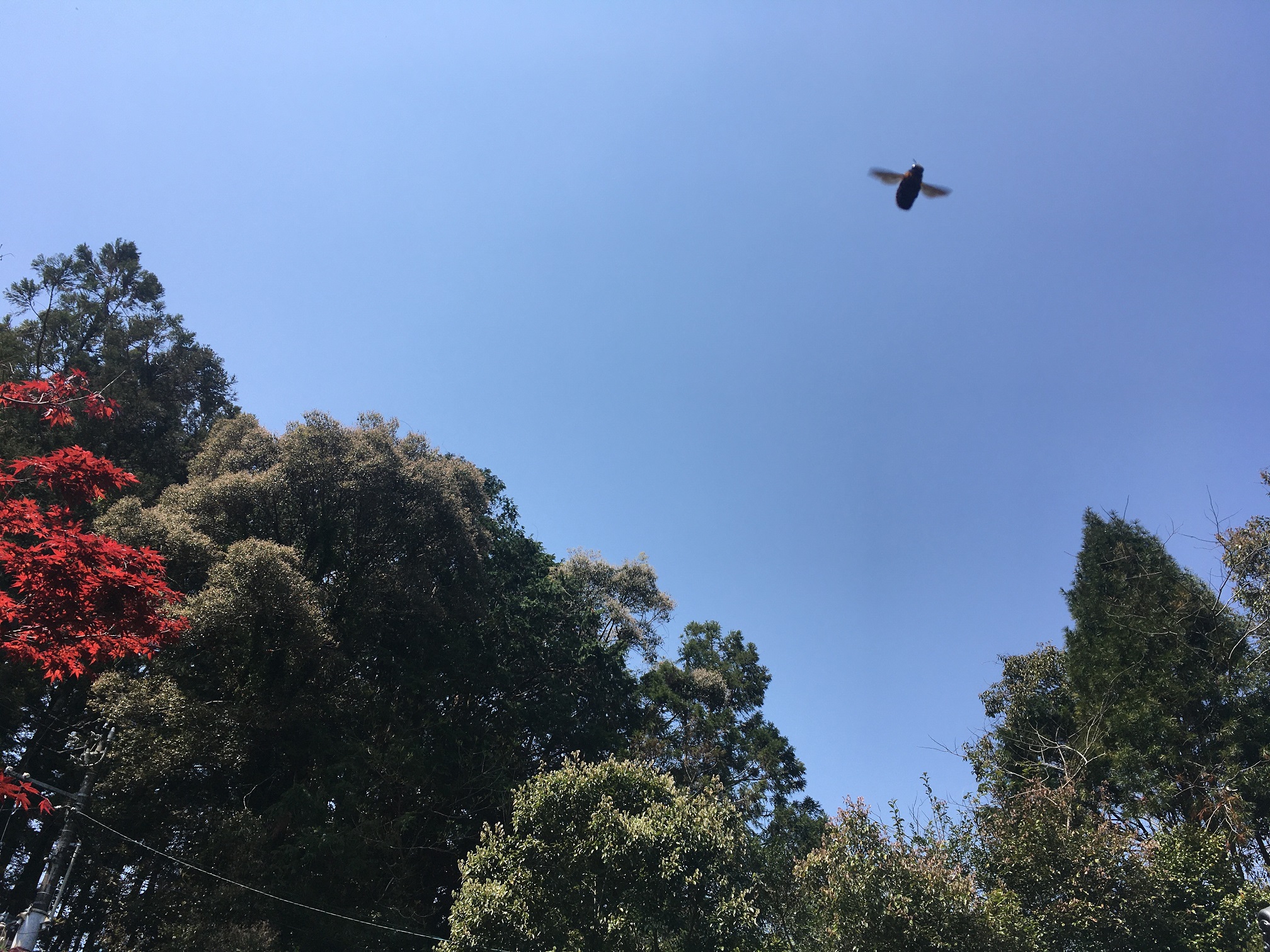 どうやら熊蜂の縄張りに入っていたようで、ホバリングしながら威嚇してきました。