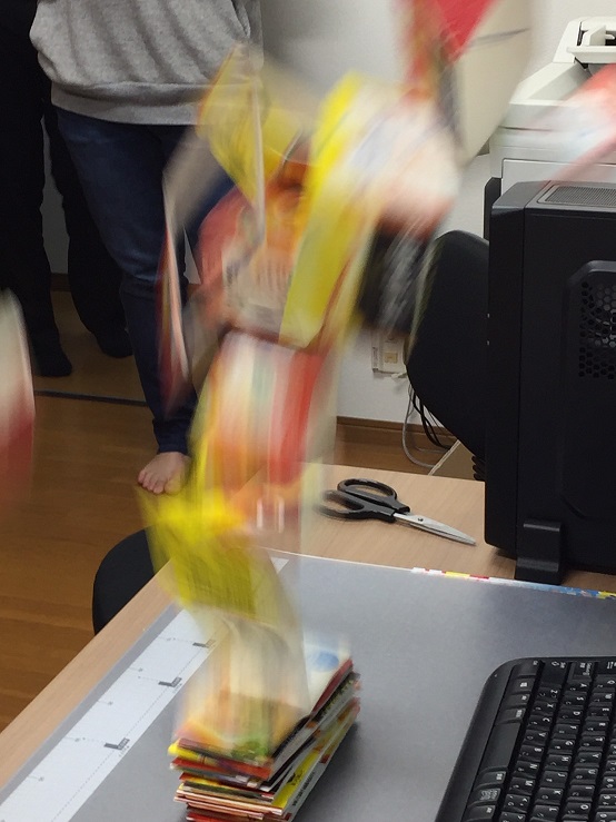 ある生徒が、友達の誕生日のために作成中の「ビックリ箱」の仕掛けを見せてくれました。