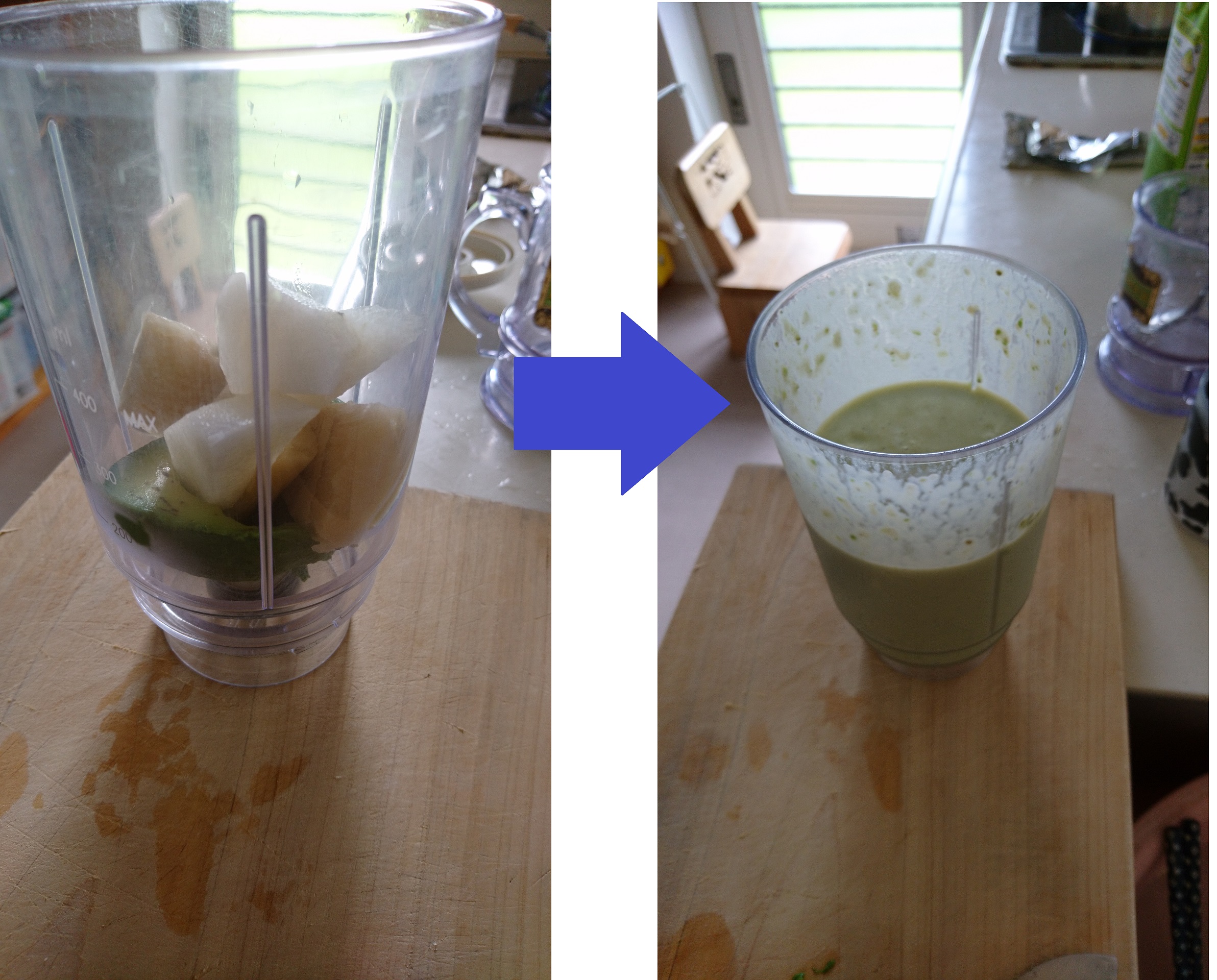 アボカド+バナナ+なし 毎日飲んでも飽きない味です。