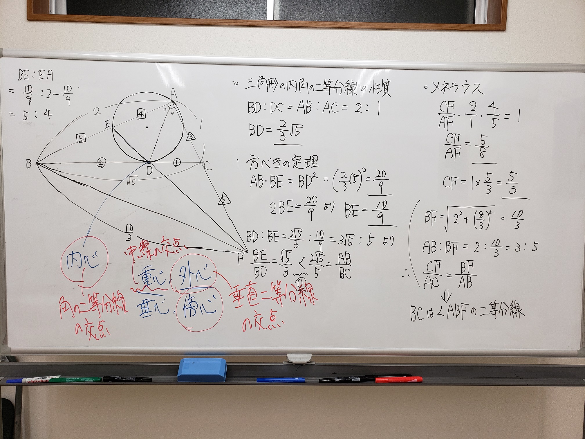 メネラウスの定理・チェバの定理・方べきの定理・内角の二等分線の性質・三角形の五心・三角比 etc
