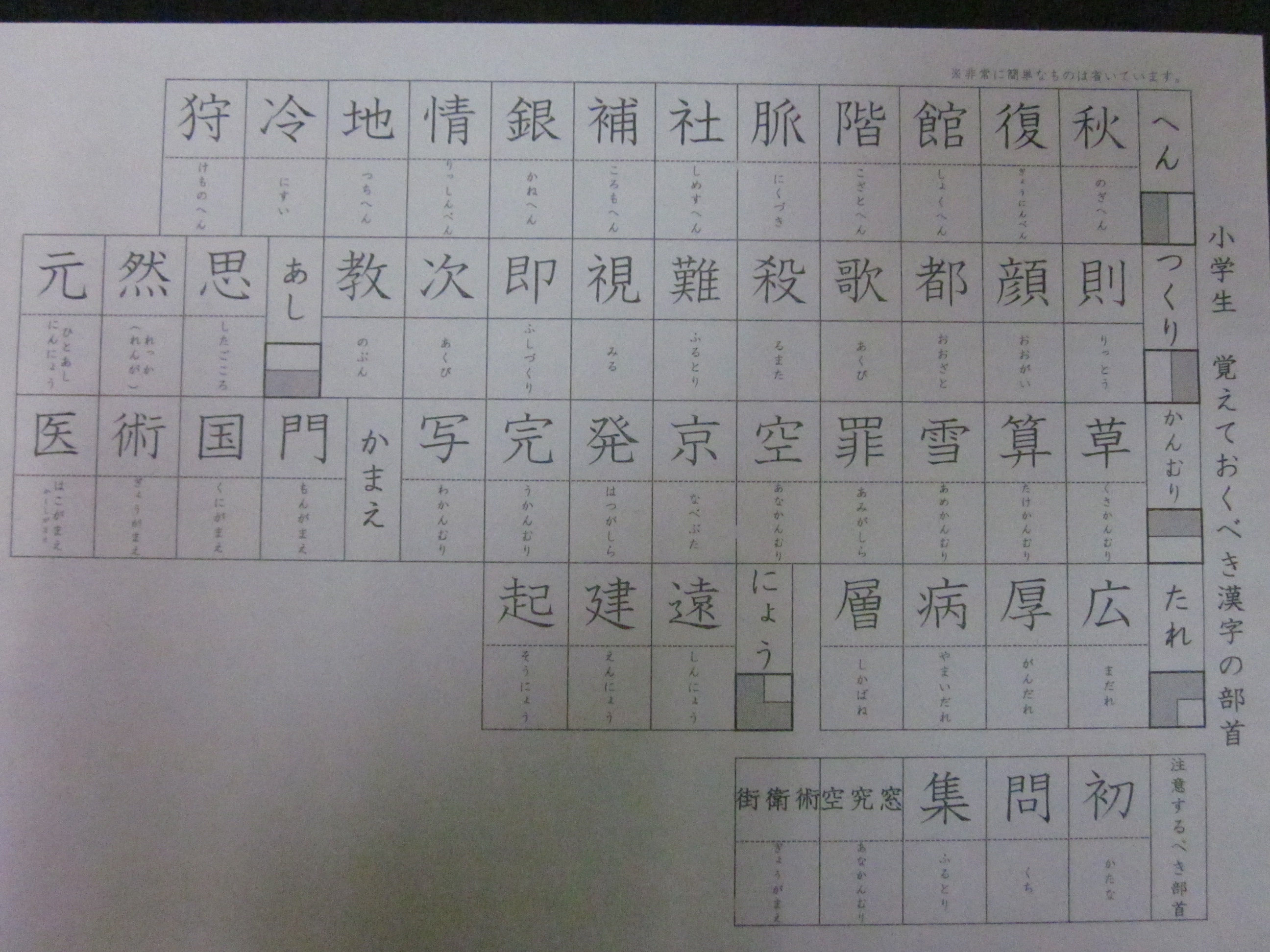 こちらは私が小学生用に作った「漢字の部首プリント」です。