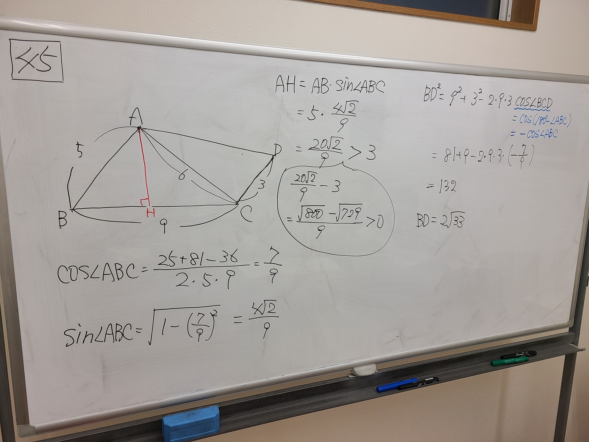三角比を使った「図形と計量」の範囲です。