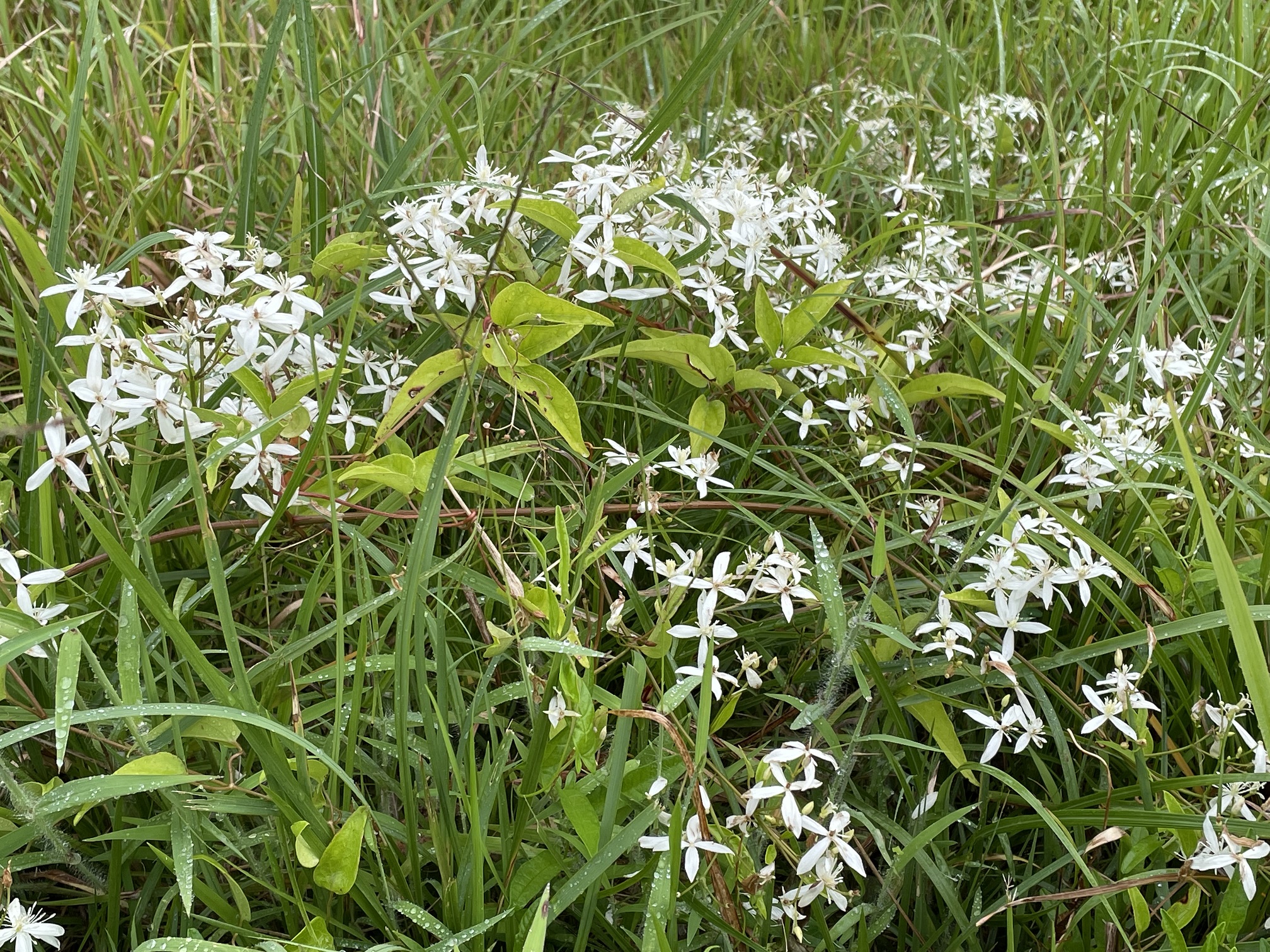 「この花を帽子にくっつけてスナフキンの真似をしよう。」とバカなことを企んでいました。