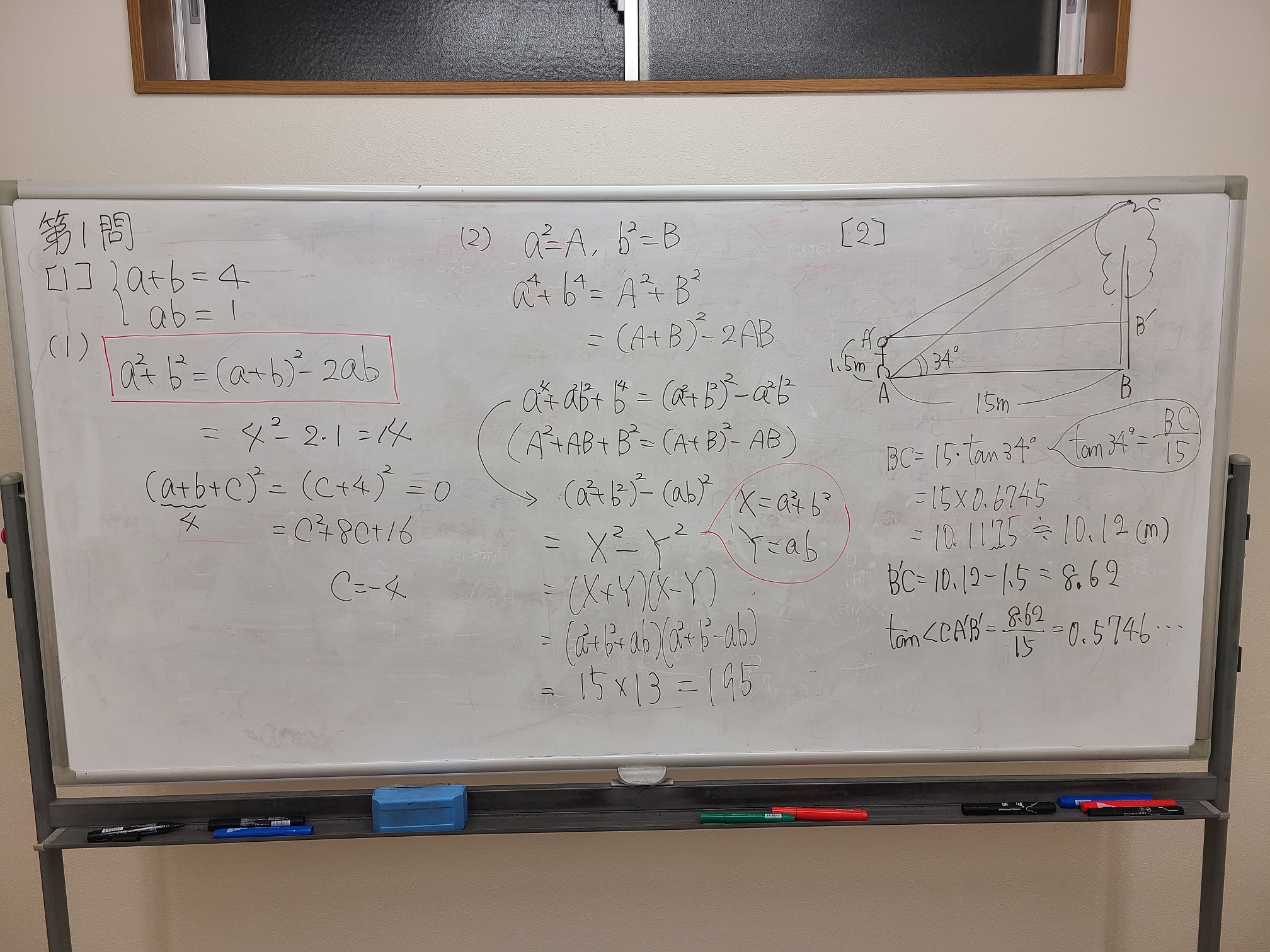 「整式の変形」「三角比」「図形の性質」「2次関数」
