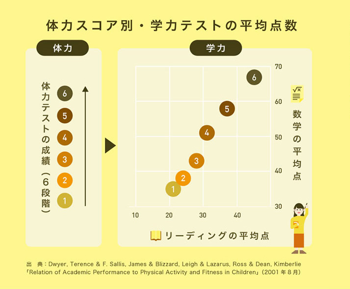 体力と学力には関係が!運動ができる子は勉強もできるようになると多くの研究で実証されているようです。運動をすると脳の神経細胞の増加や記憶をつかさどる海馬が大きくなることがわかってきており、運動後は脳への血流が増し活性化して、思考力や集中力が飛躍的に高まる機会となるので、学習をするチャンスだそうです。