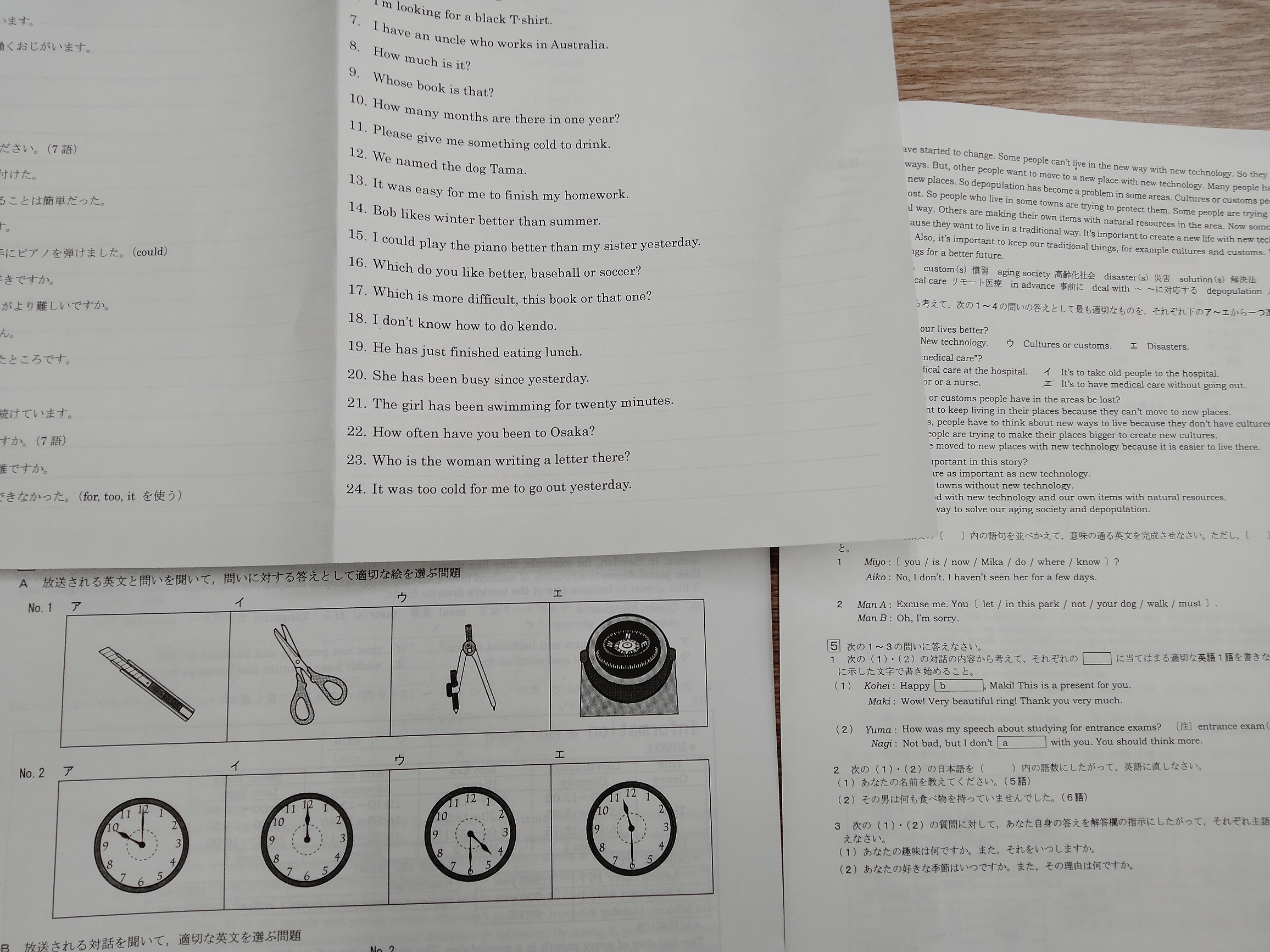 高校部では、冬期講座最終日となりました。公立中3生を招いて統一模試の解説を行いました。英語はリスニングの問題でやや聞き取る情報が多い個所では混乱しやすかったかもしれませんが、全体を通して易しかったと思います。長文では読みとる必要もないところで時間をロスしてしまいがちでしたが、全体としては日ごろの音読を心掛けている人にはそれほど苦労なく読みやすい内容だっと思います。何度か解説を行った感想として、リスニングと英作、並べ替えの問題は得点源だと思ってます。今回悪かった子は、今までの模試をしっかりと見直してほしいですね。