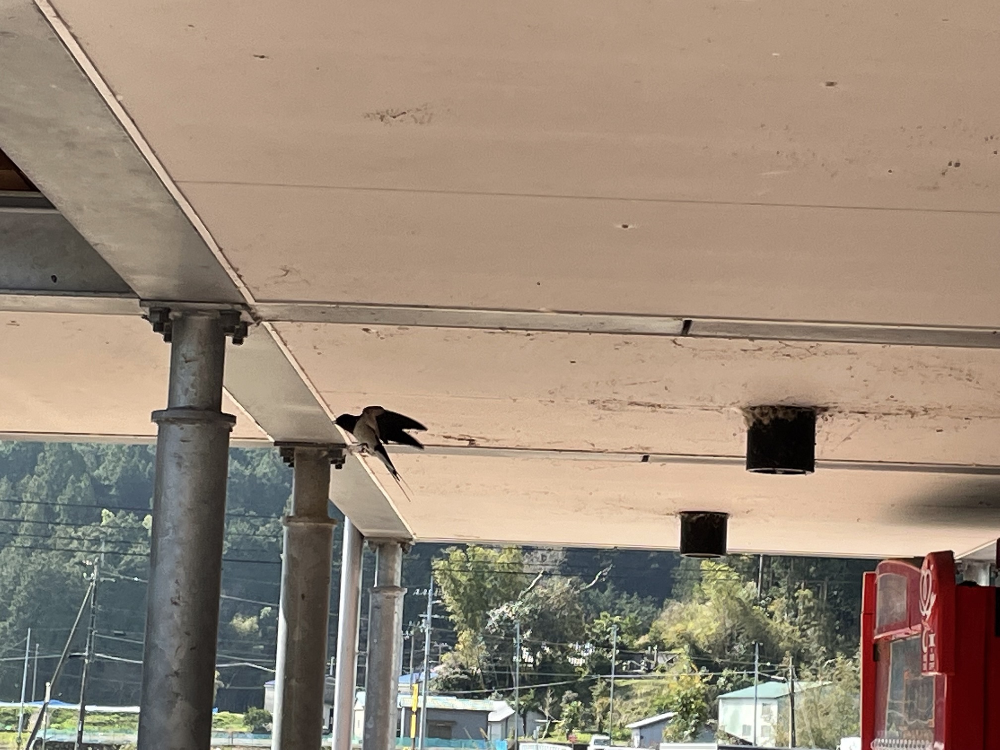 弁当を買いに立ち寄った道の駅ではツバメが巣作りに励んでいました。