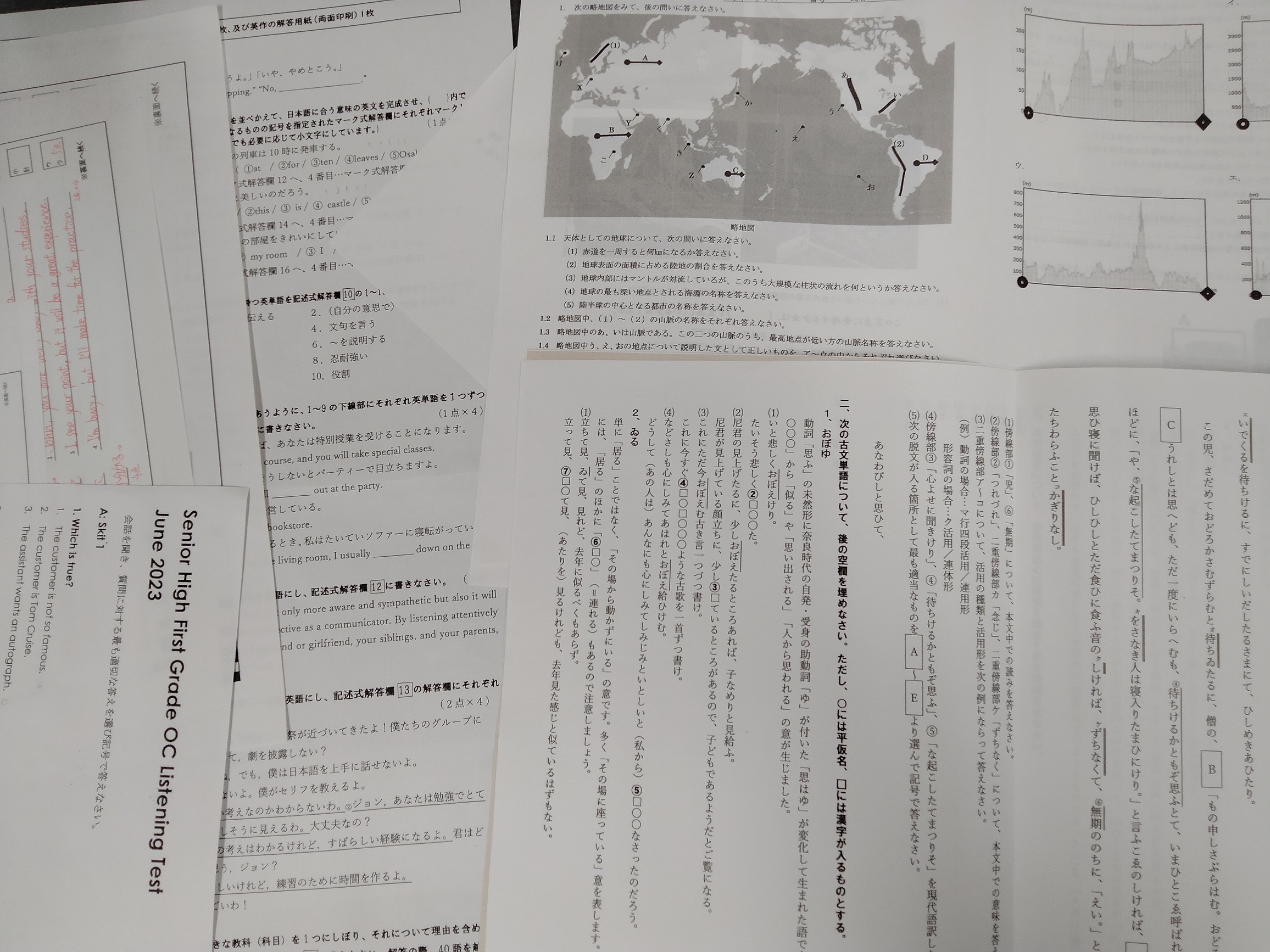 テストが続々と返却されてます。間違えた問題からしっかり得るものを得ない限り、成績の向上は図れませんよ。簡単な問題だからといって答えだけ合えばいいという思いで物事に対処しているうちは、どんなことでもそこに関する能力は頭打ちになってしまいます。簡単なものほど自分の思考を確認するために、重要な役割を果たすということを念頭に置きつつ取り組む姿勢が大事です。簡単だからこそきちんと自分のやっていることを確認しなければなりません。英語なら品詞、語順、修飾関係、文型そういったことに意識を向けることでやっと正しく意味が取れるようになり、正確な日本語訳ができるようになります。そしてその先にやっと正しい英文を書いたり、話したりできるようになる。簡単なものほど自分の頭の中でどんな処理をしているか見極めたほうがいいにきまってます!!