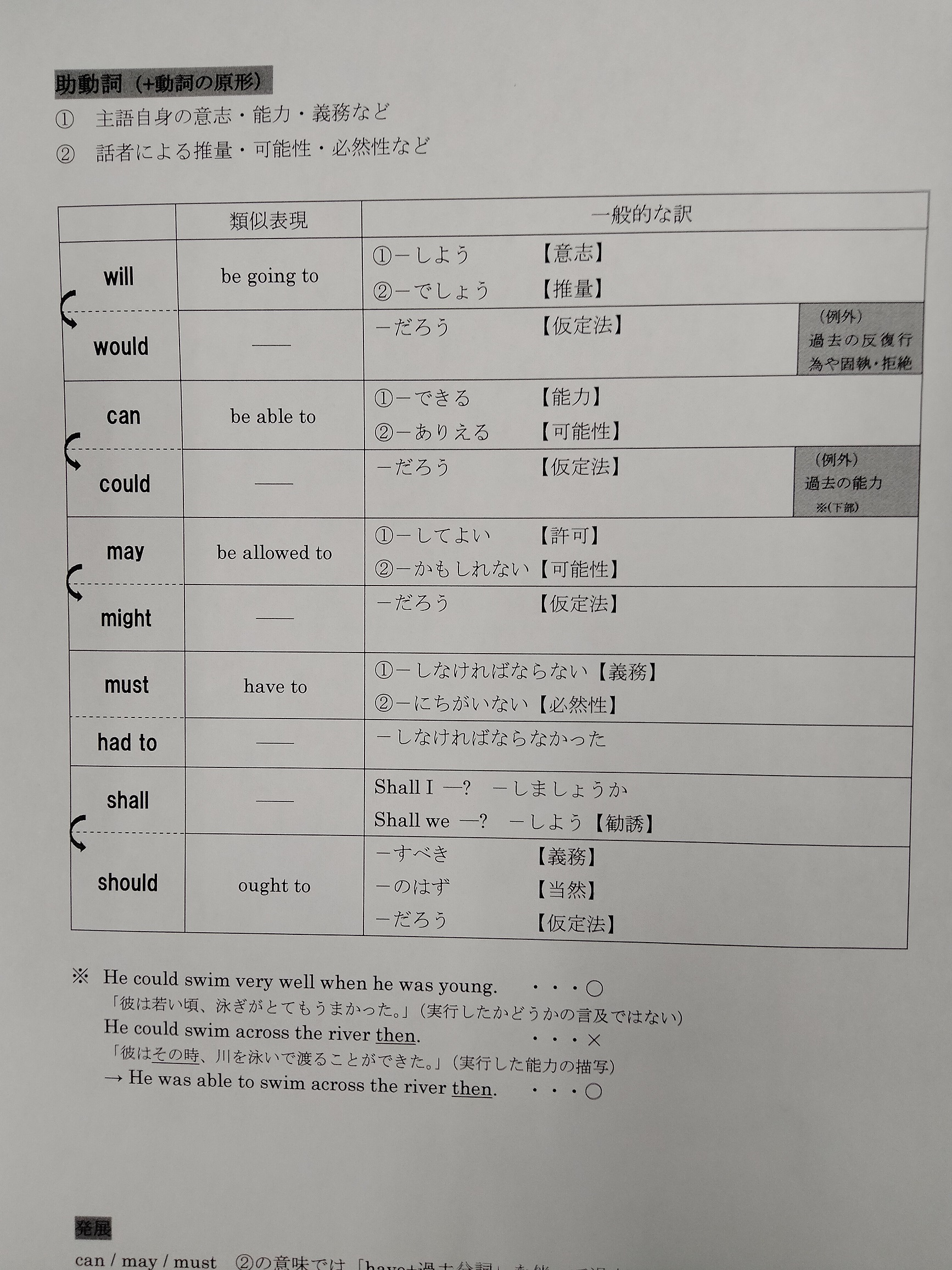 will , would , shall , should , must , can , could , may , might といった助動詞は、話者や書き手の気持ちや感情が反映されることから法助動詞と言ったりします。単なる客観的事実を述べるのとは違って、かなりの割合で主観性が強い表現になります。たとえば、will には「意志力・確信」が感じられ、should には「義務・当然」、must には「圧力・必然性」、can には「能力・可能性」、may には「許可・可能性」といった具合で文を支配することになります。ちなみに助動詞の過去形と呼ばれる “would , could , might”などは、過去の意味を持つことはまれで、would なら will の意味を弱めたものであり、could なら can の、might なら may の弱い形ってことがほとんどですね。たとえば、may が「かもしれない」なら、might は「ひょっとしたらーかもしれない」のように、推量の程度を弱めた感じです。つまり、自信がなく確信が持てない気持ちを過去形で表してるわけですね。