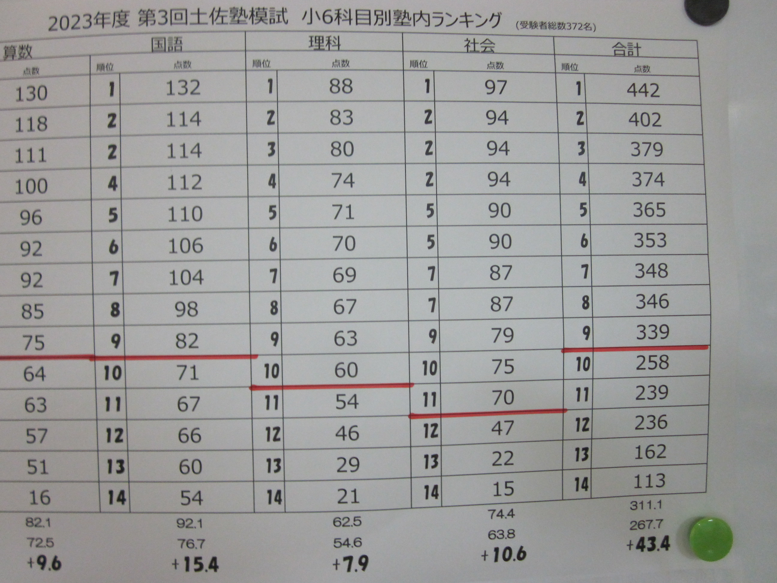 6年生の結果です。塾内の採点なので確実なものではないかもしれませんが、実際に受けた人たちの平均点よりも+40以上あります…今年の6年生は優秀揃いの咲塾です(*‘ω‘ *)