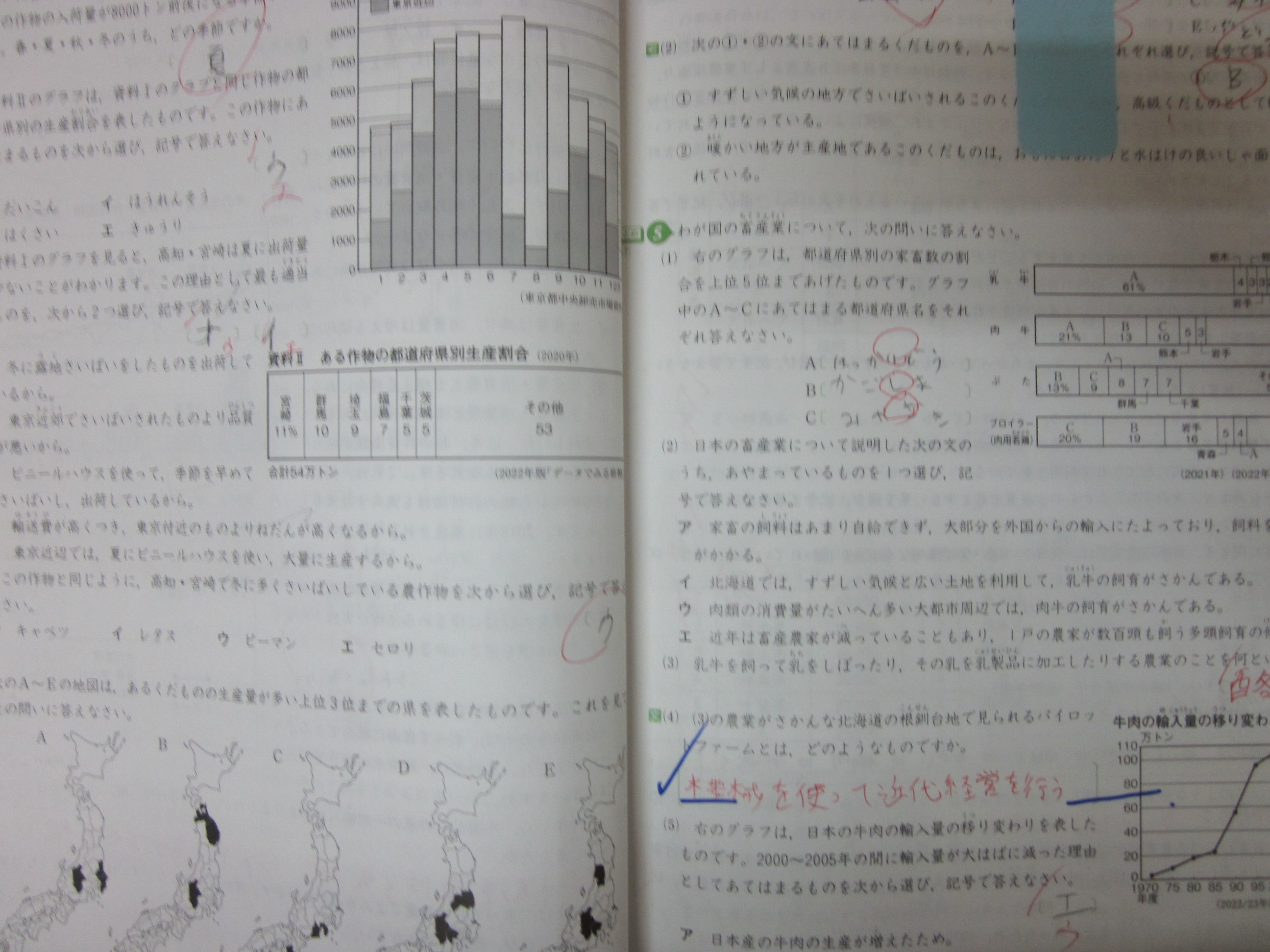そして、2学期が始まった、ということで、7月に出していた受験クラスの社会の宿題を回収しました。