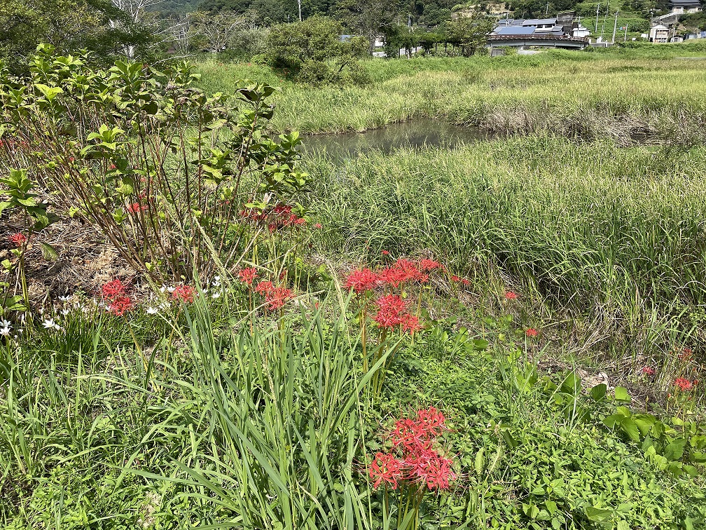 今と違って墓場に続く道はきれいに刈られ、彼岸花が毎年見事に咲きそろっていました。
