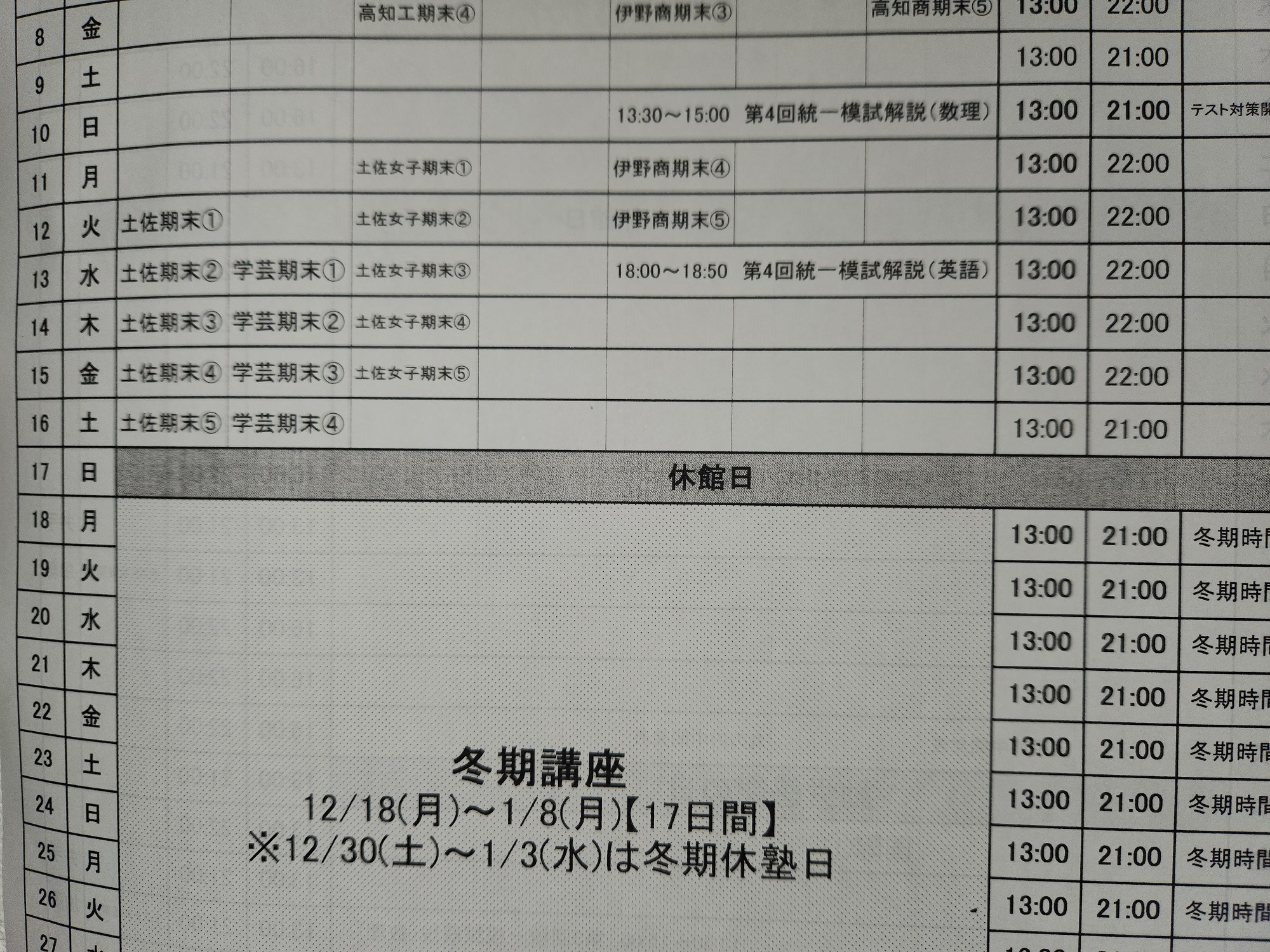 受験生以外は今回のテストの反省を活かし、来週からの冬期講座に臨んでほしいですね。