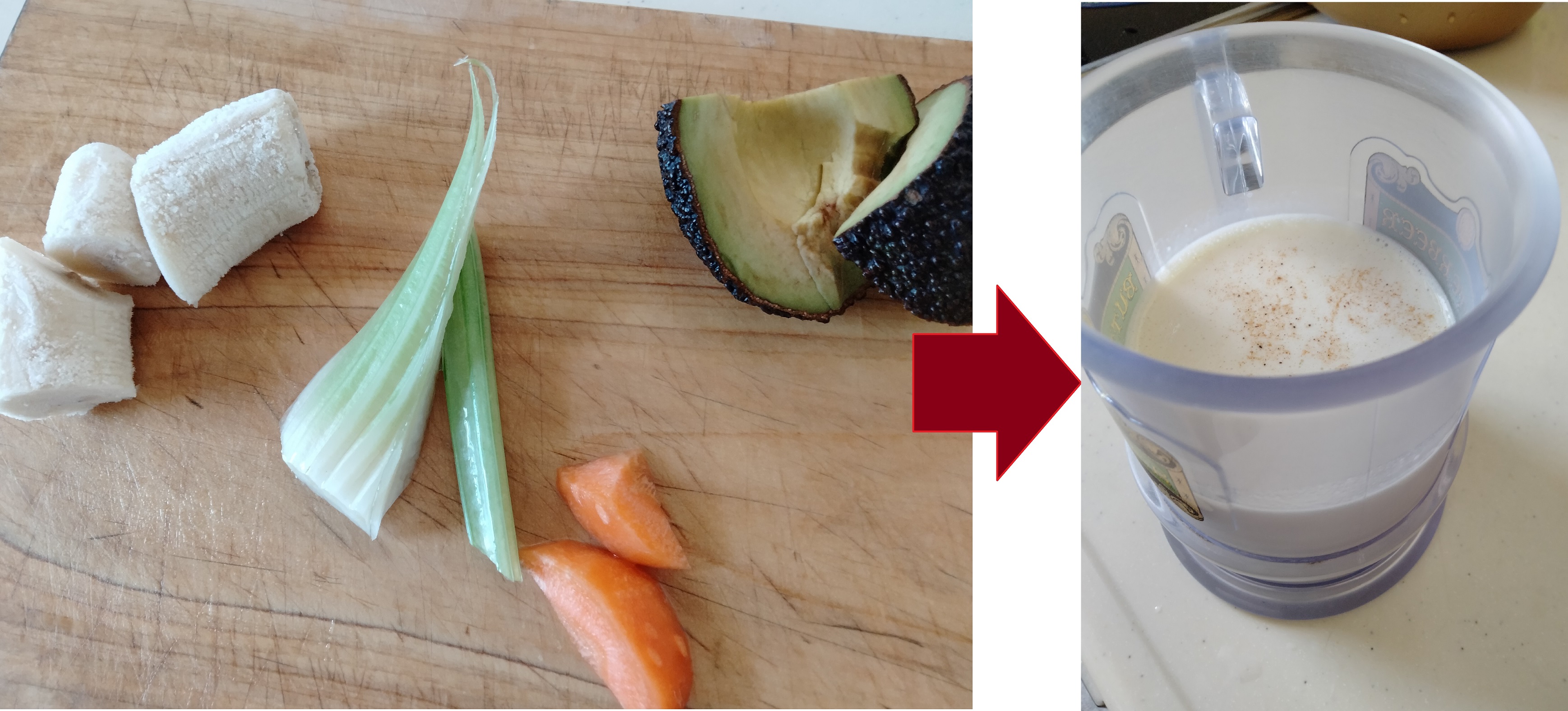 バナナ、セロリ、人参、アボカドの豆乳ドリンク。セロリが今の流行りです。