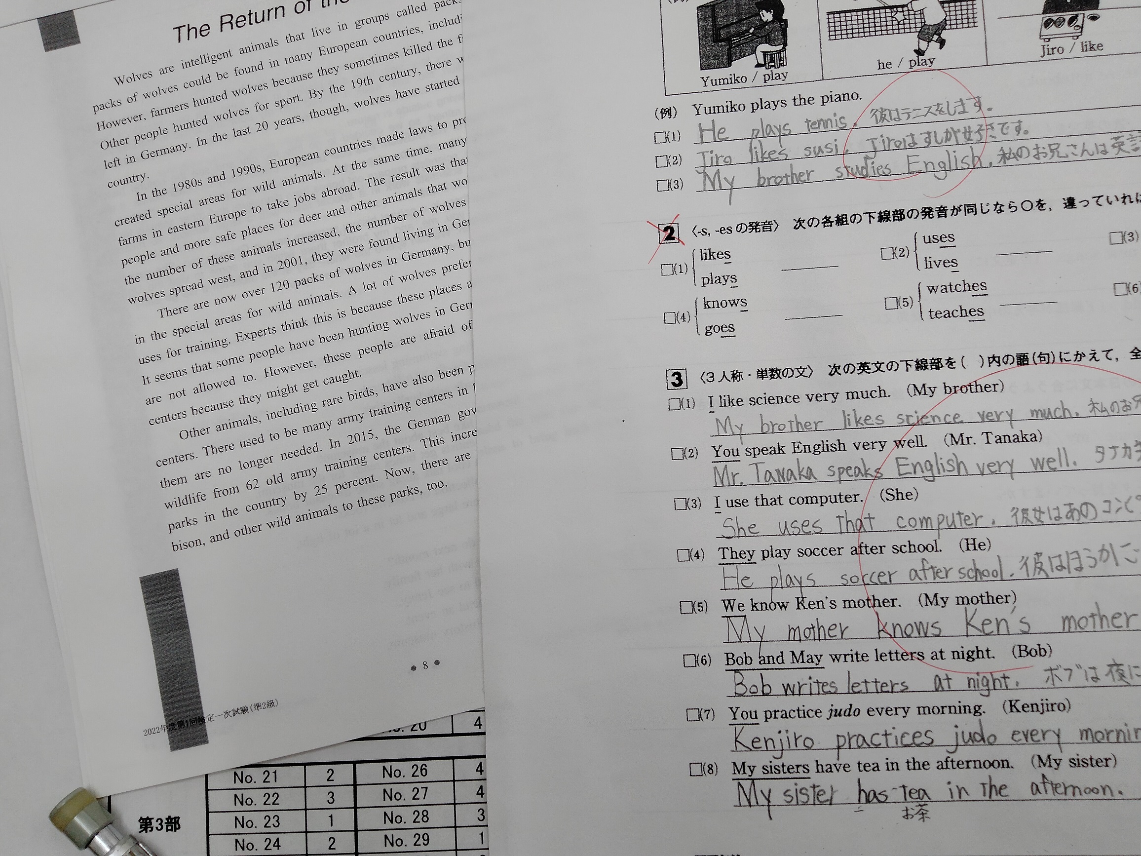 1カ月後は英検です。中1は3人称単数を習ってるところです。