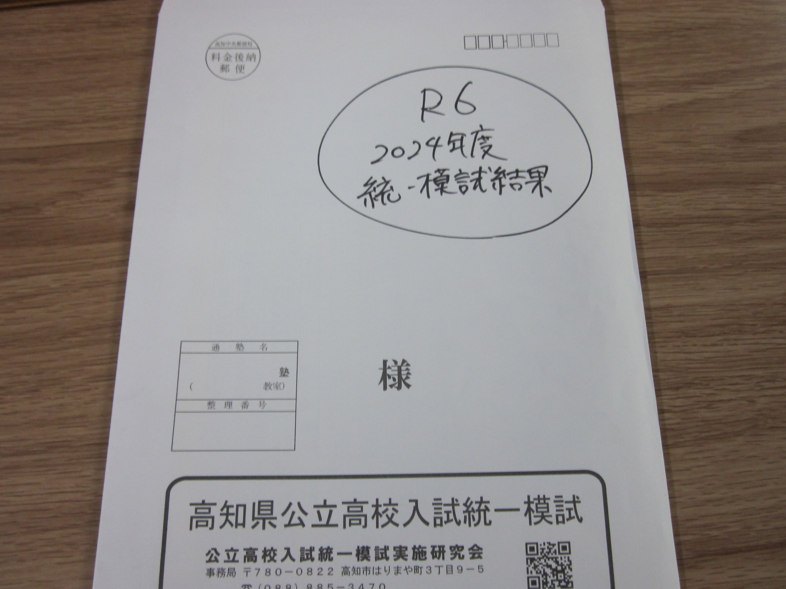 中3生の模試の結果が返ってくるので、それを渡すために来ました。