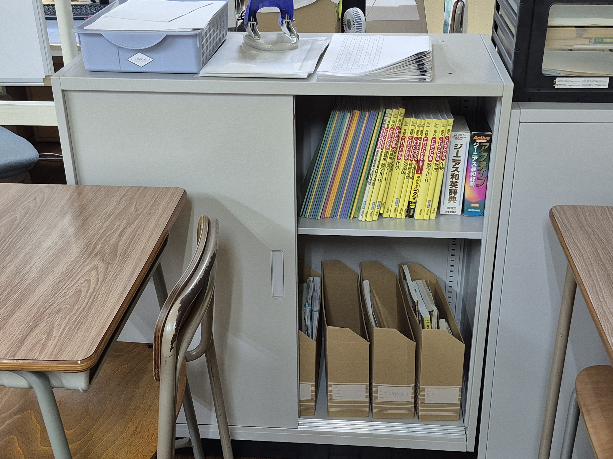 個人の持ち物や辞書や参考書を置く共同のスペースです。