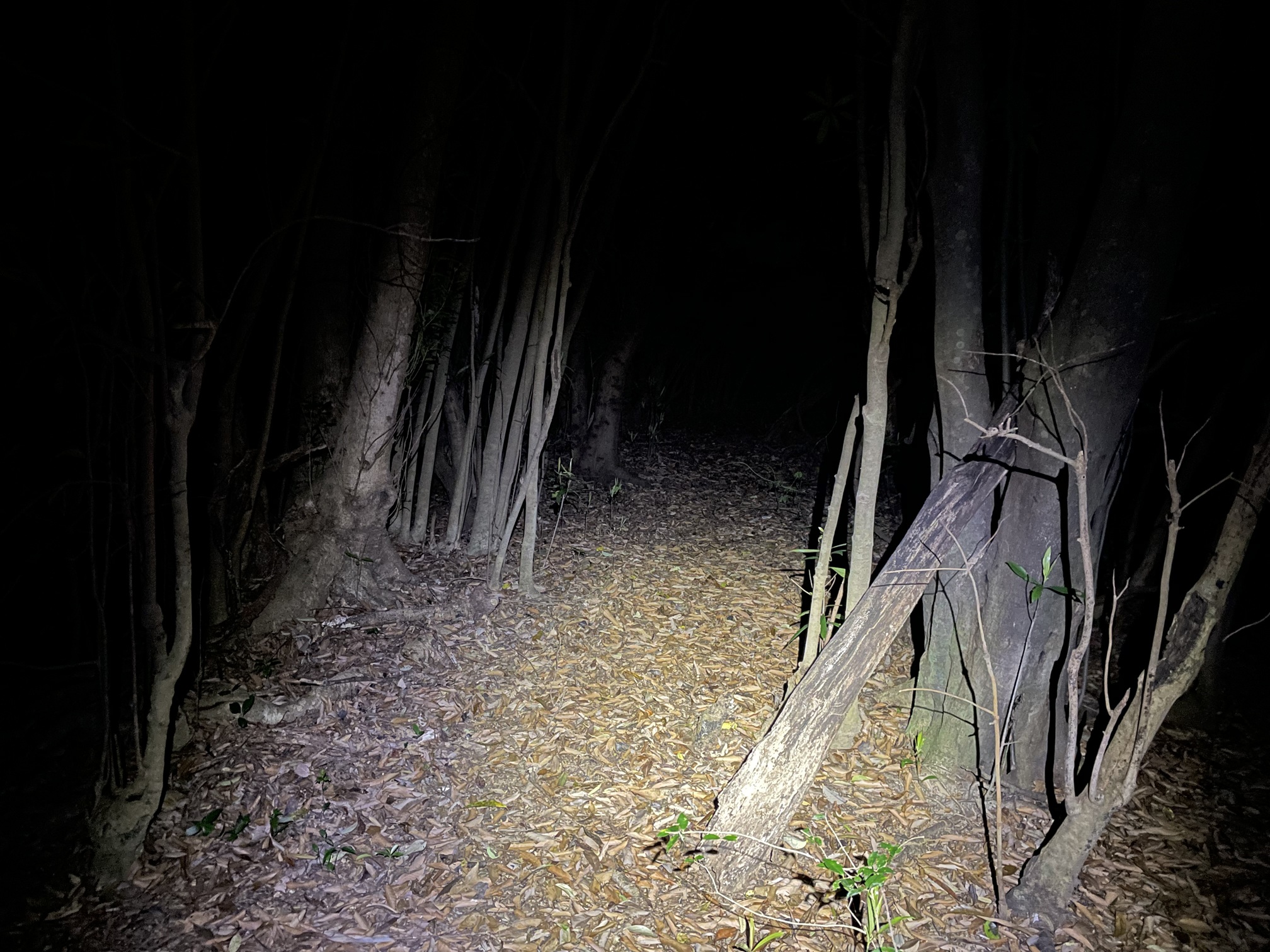 突進してくるかもしれないので護身用にナタを持っていますが、