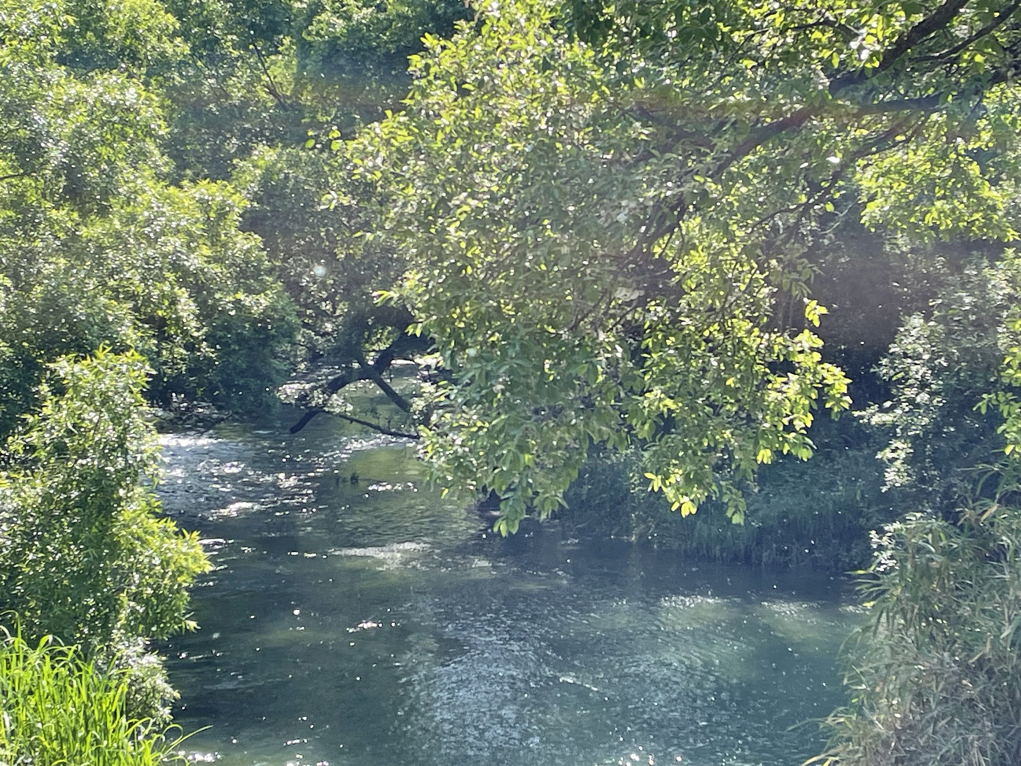 新緑の間を縫って流れる川の美しさに毎日通勤の足を止めて振り返ります。