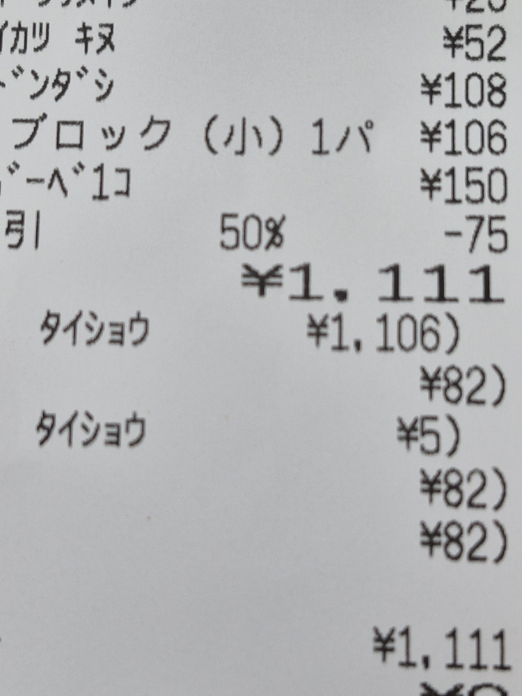 今日、昼ご飯の買い物をした時のレシートです。
