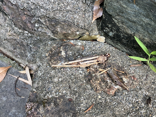 今朝、出がけに何気なく足元を見るとミノムシがいました。