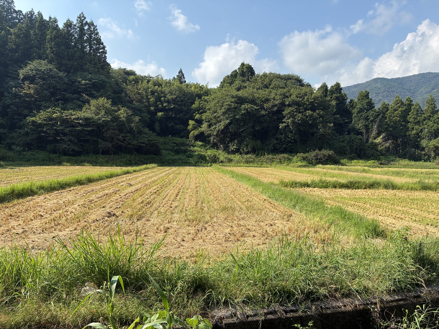 近所の田では稲の収穫が終わりました。