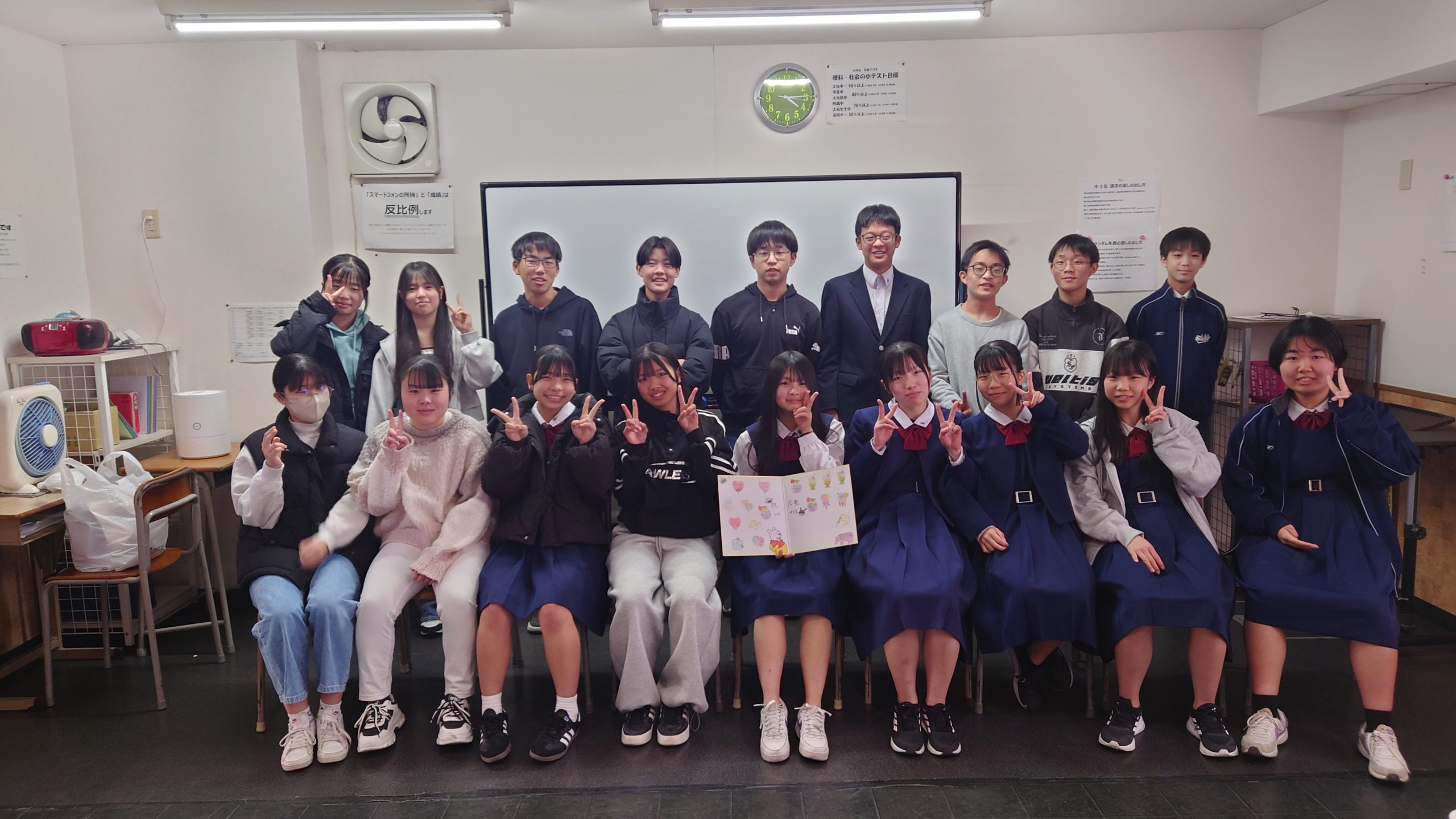中3生は卒業式も入試もすべて終わり、本日は塾での卒塾パーティでした。