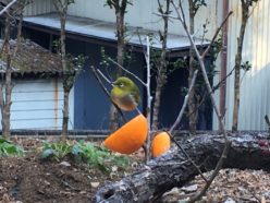 梅の枝にミカンを刺して待ちました。